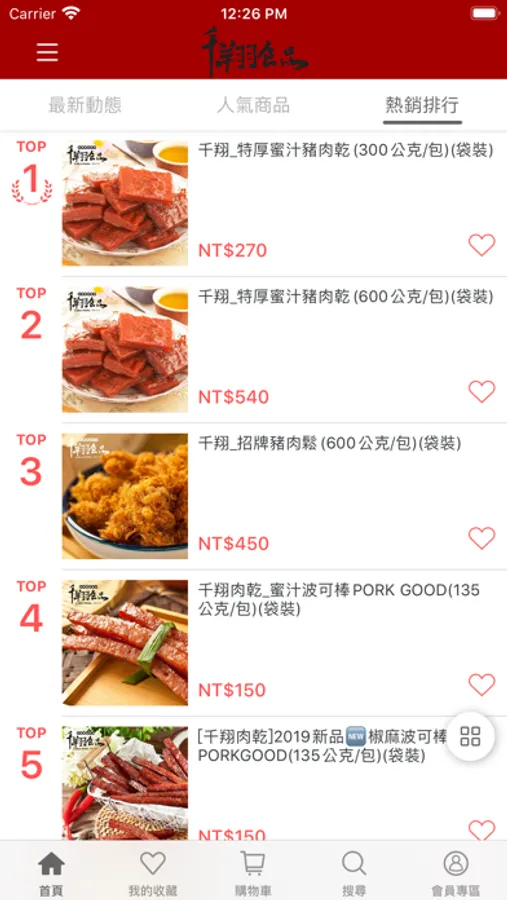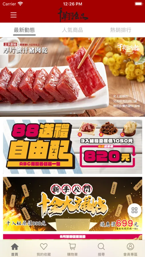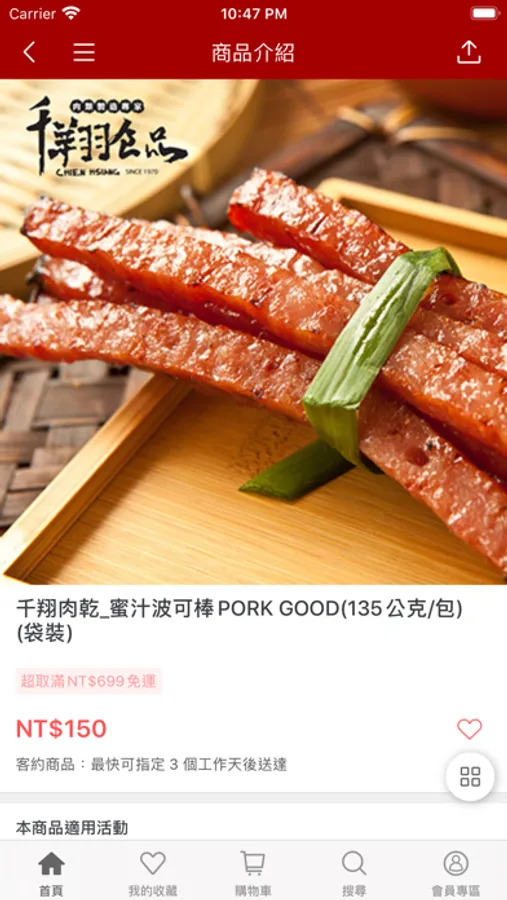 *千翔食品肉乾肉鬆伴手禮名店APP提供完整手機購物機制。
