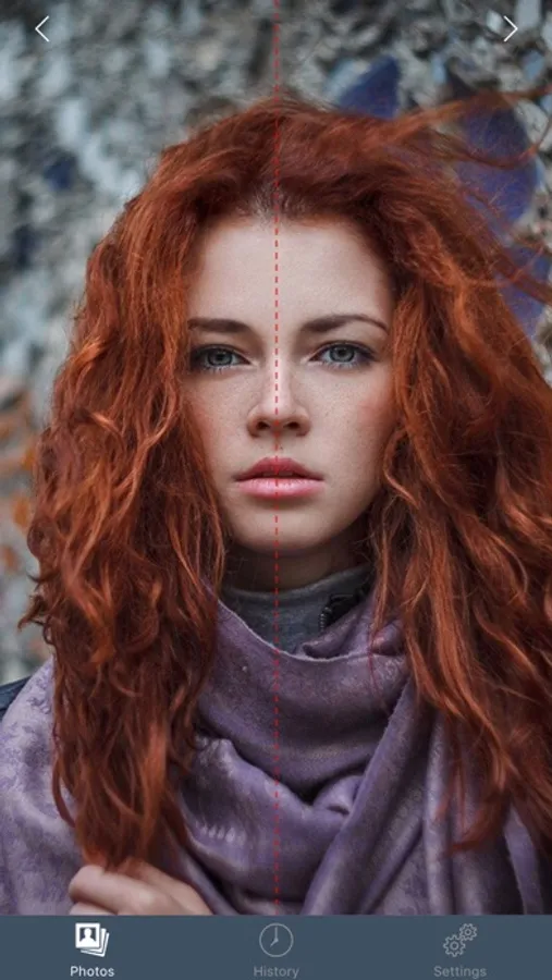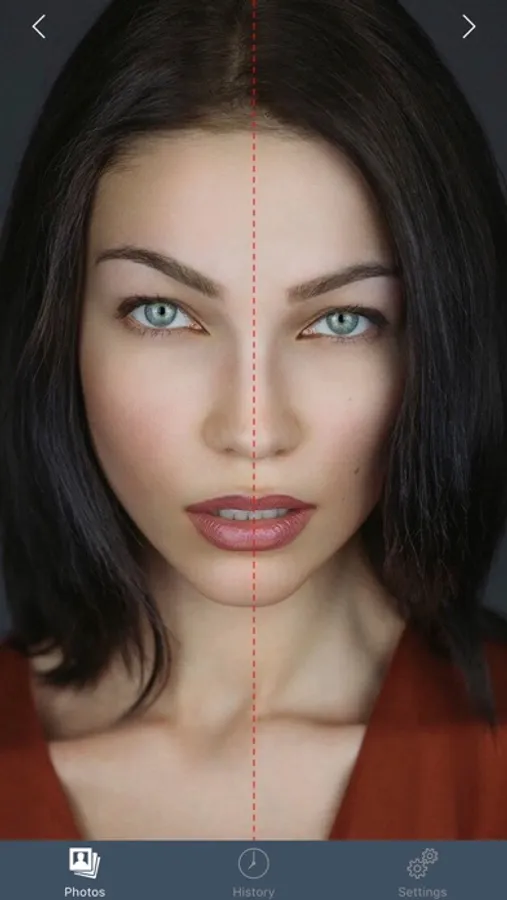 Choose photo from your camera roll or take a photo, and find out how your face would look like if it were a completely symmetrical.