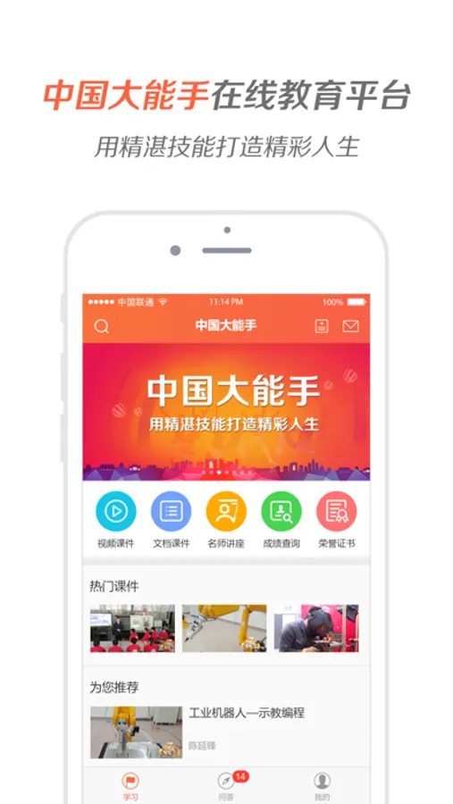 中国大能手职业技能教育采用国际化标准课程体系,先进的互联网+教学模式,整合优化各行业优秀教学资源;集理论授课、在线授课、专家答疑、实践操作及企业定向培训等方式为一体,打造一流技术人才!