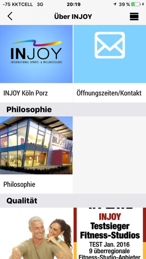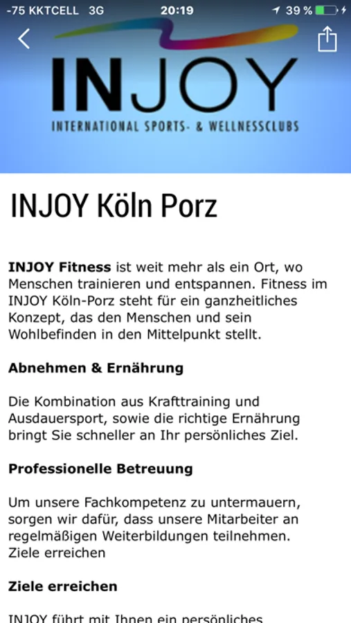 Mit der INJOY Köln Fitness-App haben Sie Ihr Gesundheitsstudio immer dabei. Informationen wie z.B. der Plan des aktuellen Gruppentrainings und laufende Angebote sind ständig aktuell und griffbereit!