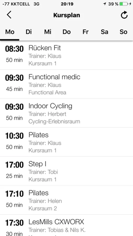 Direkter und aktueller Zugriff auf den Gruppentrainingsplan: Für jeden Kurs können Sie Details wie Zeit, Ort und Kursbeschreibung einsehen und gleichzeitig Freunde dazu einladen.