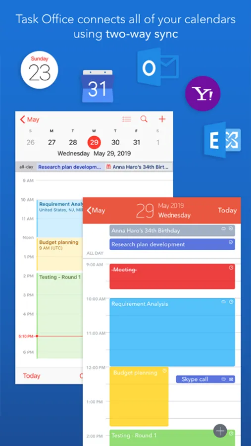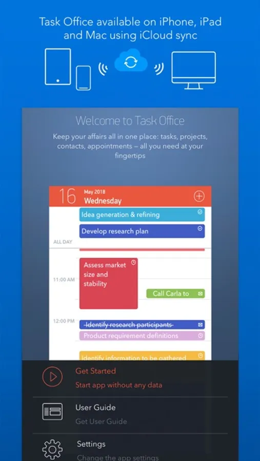 • Task Office syncs with Calendars (iCloud, Google Calendar, Exchange, Yahoo, Outlook) and you will not miss anything checking out due dates