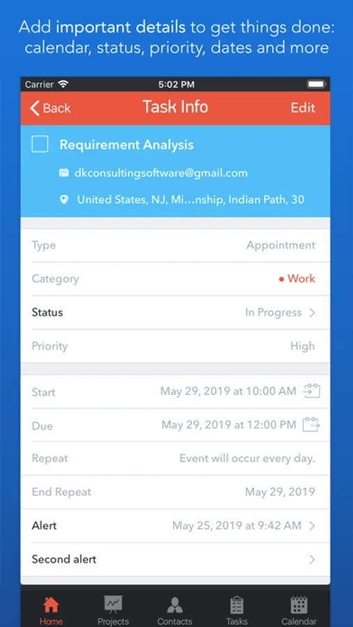 • Sync your information – tasks, projects, contacts, etc. – between your devices