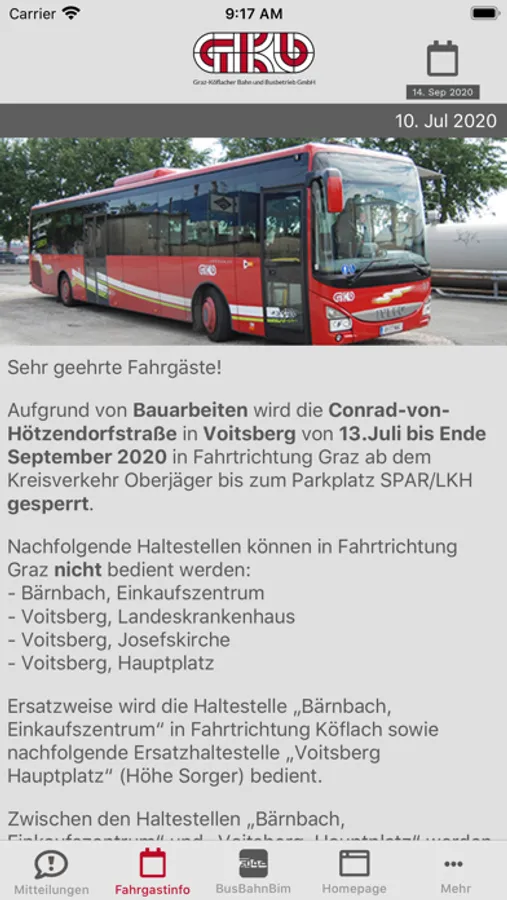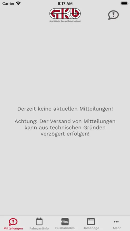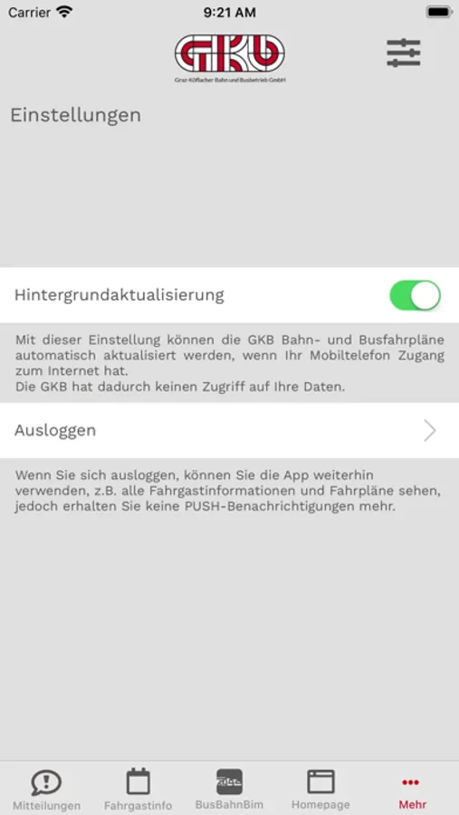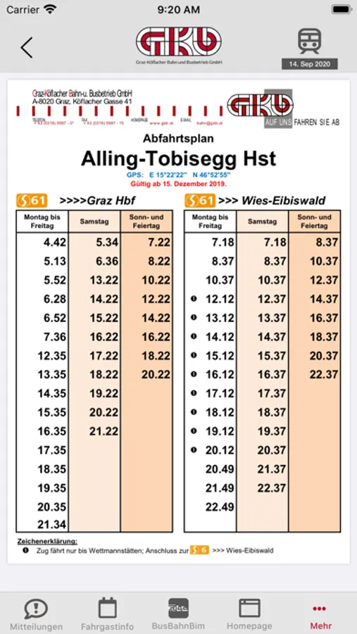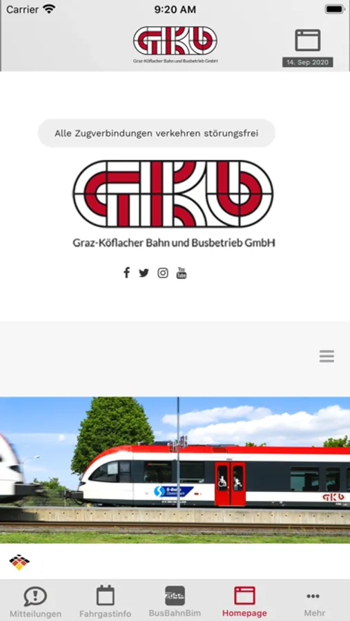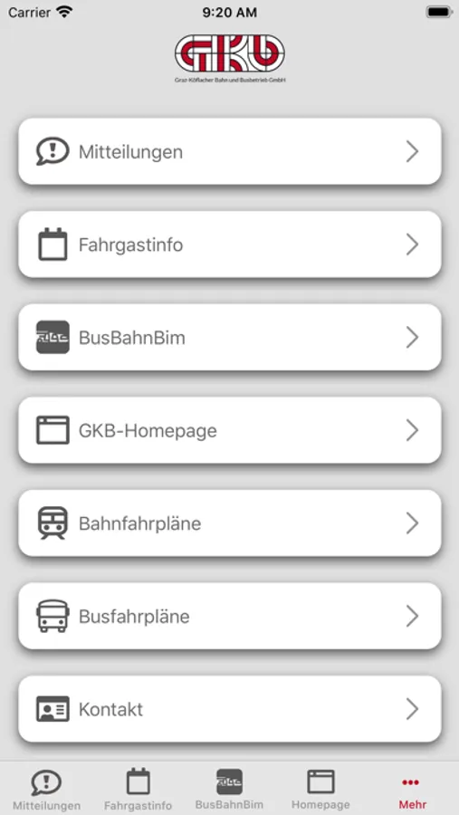 Die GKB-Fahrplan-App ist ein natives Informationssystem für Verspätungen, Störungen oder Unterbrechungen des regulären Bahnbetriebs der Graz-Köflacher Bahn und Busbetrieb GmbH.