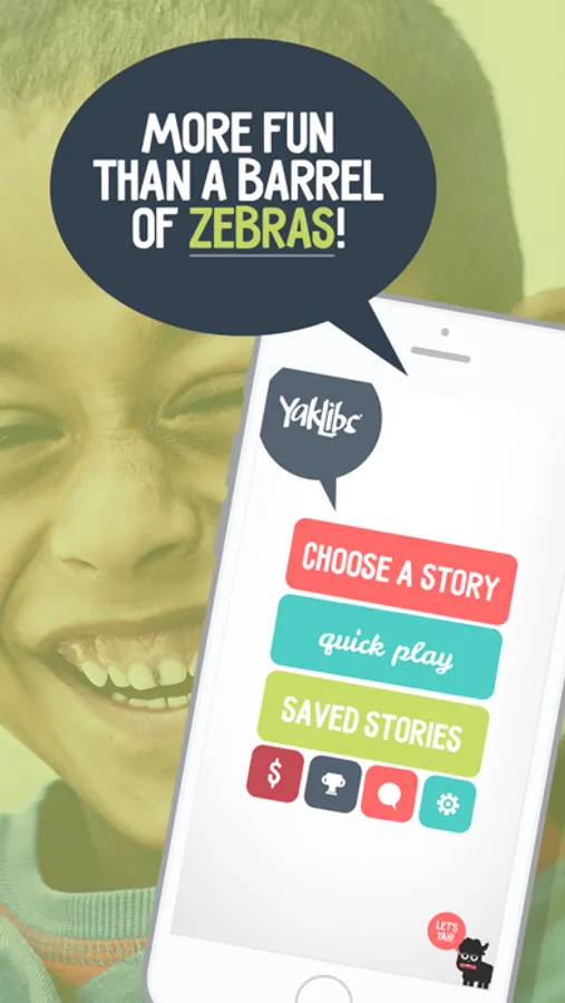 You'll be laughing until it hurts! It's YakLibs—the hilarious new game that has kids everywhere cracking up. Just choose a story, fill in the blanks, and get ready to laugh your head off as your iPhone reads your silly story out loud. Give your funny bone a workout—download YakLibs today.