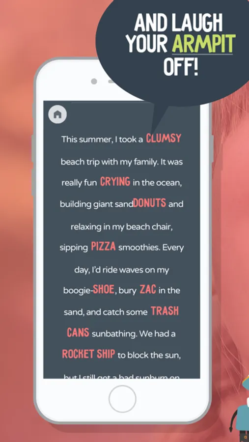• Play each story again and again—each time you'll get a different, hilarious result.
