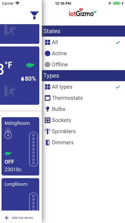 This application has basic functionality to add a device, remove a device and has been written to primarily control iotGizmo's Thermostats, Dimmers, Socket and LED Bulbs.