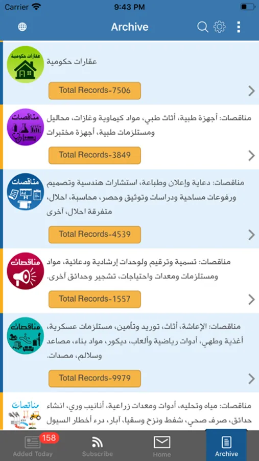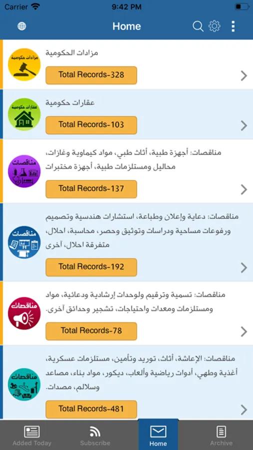 1- عرض المناقصات الحكومية، المزادات، العقارات فور طرحها من الجهات الحكومية.وبطريقة سهلة ومصنفة.