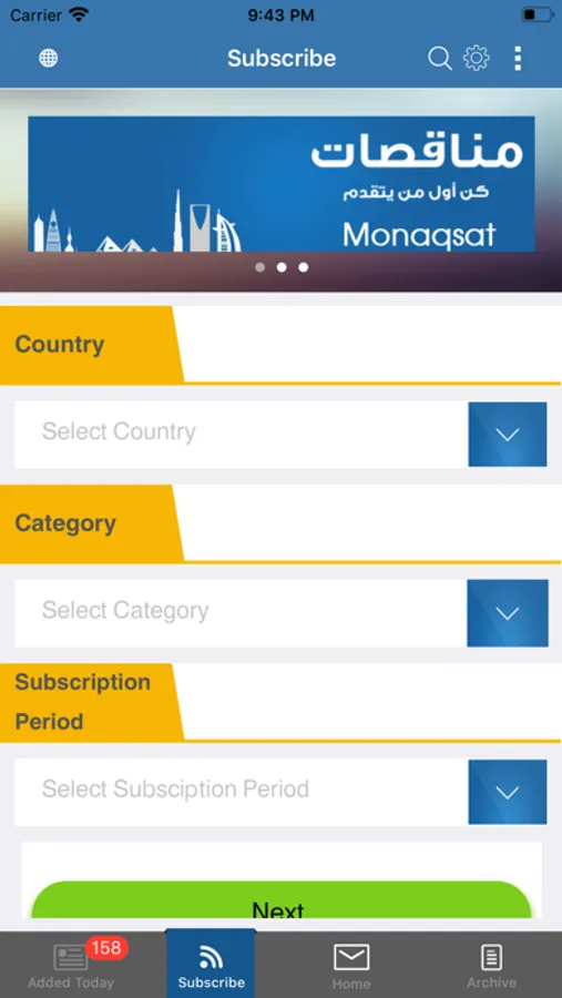 تطبيق متخصص في عرض كافة الـ: (مناقصات حكومية ، مزادات، عقارات حكومية، مشاريع، منافسات) بكافة القطاعات الحكومية وكبرى شركات القطاع الخاص