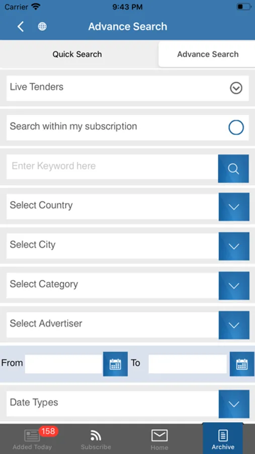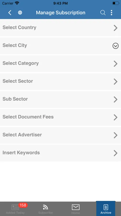 3- يمكن للمشتركين تخصيص استلام المناقصات أوالمزادت أو العقارات وفق احتياجاتهم بـ (الجهة المعلنة، الدولة، المدينة، تخصص الشركة أو المؤسسة، بقيمة كراسة الشروط) وذلك من خلال إدارة الإشتراك.