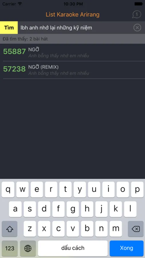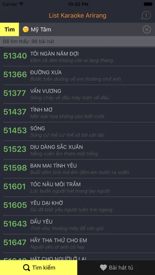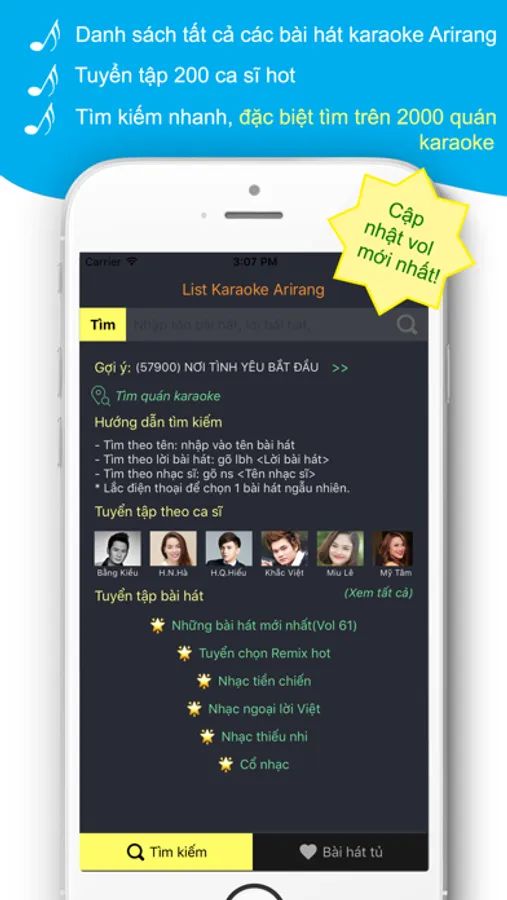 Ứng dụng miễn phí tra cứu bài hát chuyên dụng cho đầu karaoke Arirang top 1 VN với đầy đủ các chức năng: