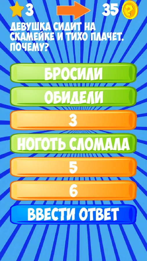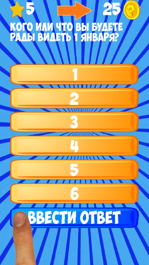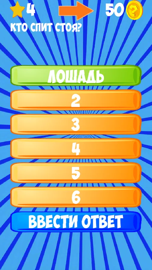 Попробуйте пройти первые 100 вопросов и вы увидите насколько увлекательна игра. К 1 ответу последуют ещё пять. Ведь для перехода на следующий уровень вам необходимо отгадать все шесть самых популярных вариантов по 1. Дать ответ 100 раз? Это очень просто. Так же вы можете открыть 1 ответ за монеты или просмотр рекламы.