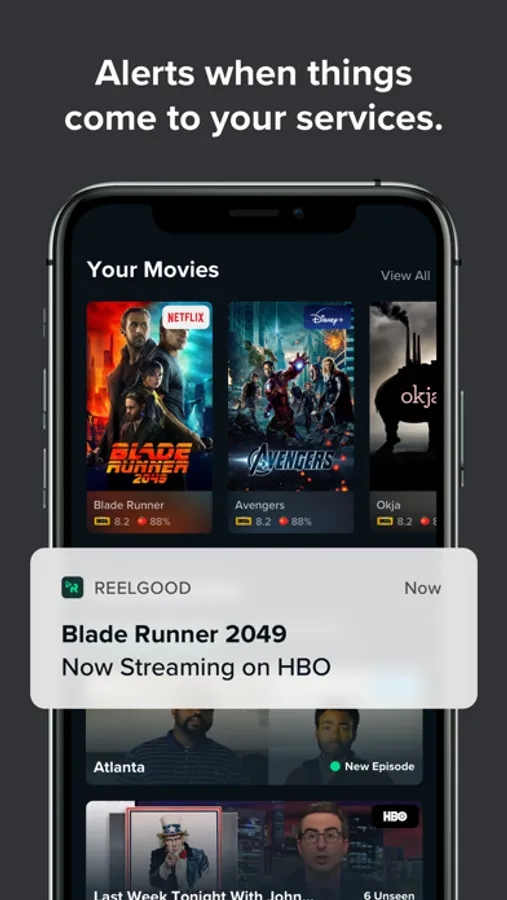 - Let Reelgood keep you updated with alerts when new episodes are available and movies are added to your services