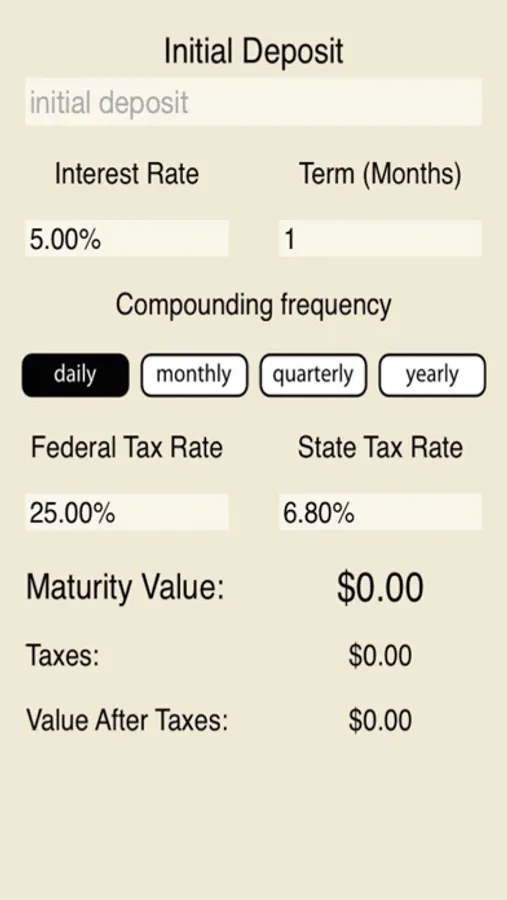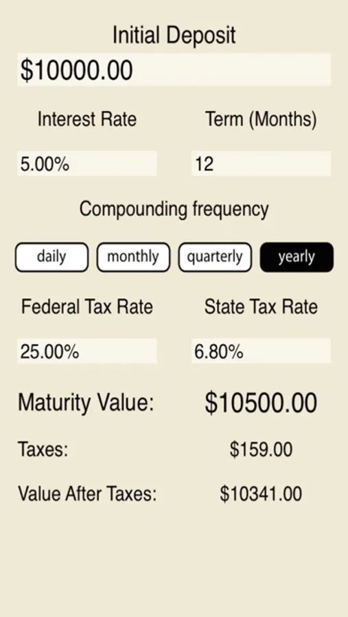 Have you ever wondered how much money you will get from your matured Certificate of Deposit? Then, this is the right app for you!