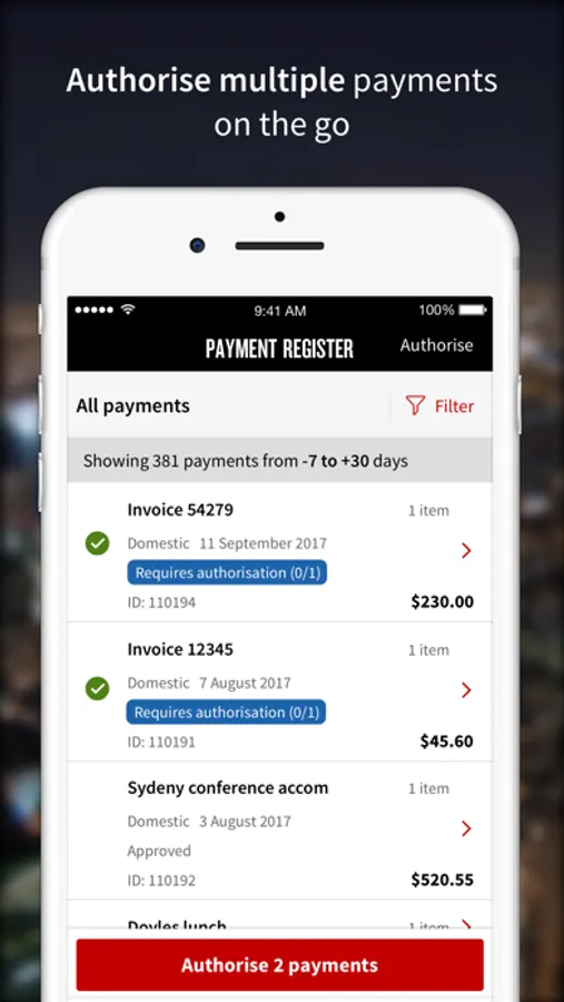 See and filter all your payments. At a glance you can see the ones that are waiting for authorisation.
