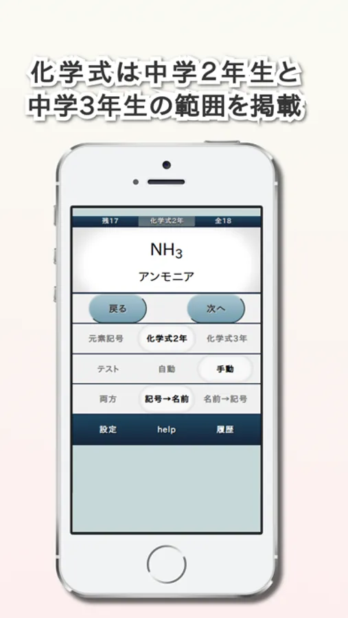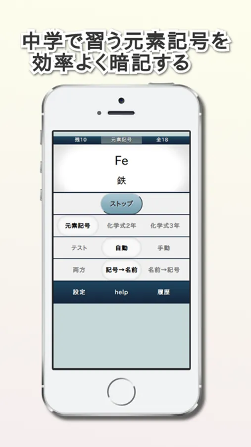 中学理科の教科書にでてくる元素記号、化学式の暗記に特化したシンプルなアプリ。