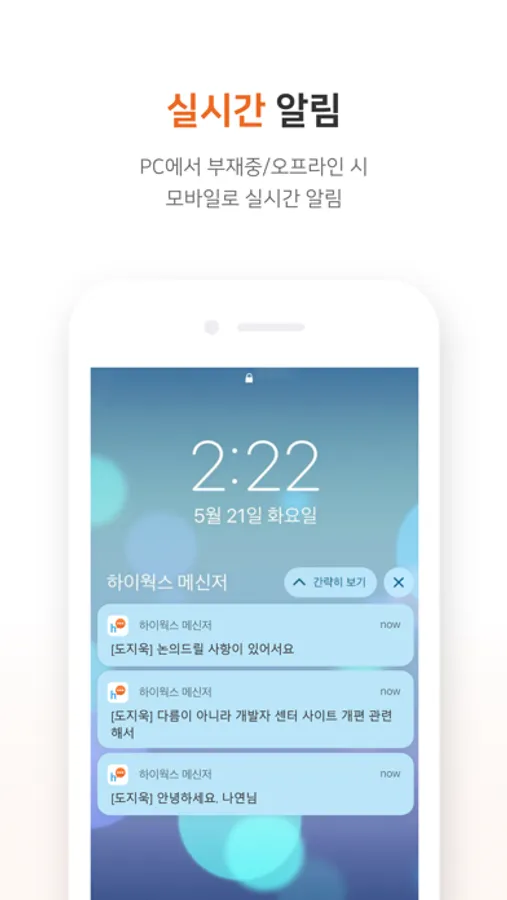 하이웍스 메신저는 기업용 업무 메신저로, PC/모바일을 통해 언제 어디서나 업무와 관련된 커뮤니케이션이 가능합니다.