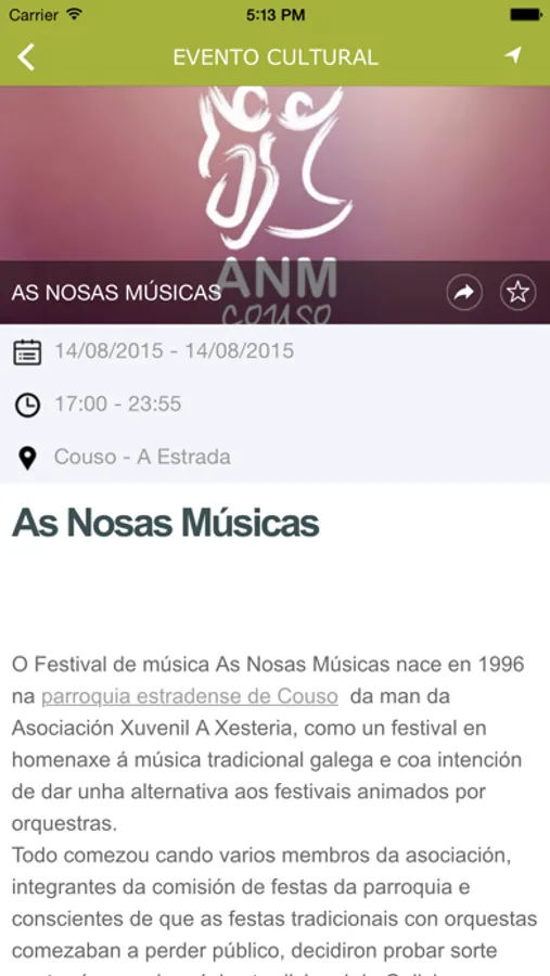 Axenda cultural, axenda xeral, axenda de festas, o teatro e a carteleira de cine podes atopar nesta app.