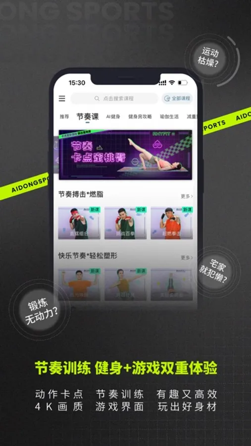 【爱动解决方案:根据不同训练目标,爱动只提供最有效的可跟练课程,选课0成本,提高训练效率!】