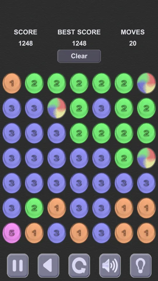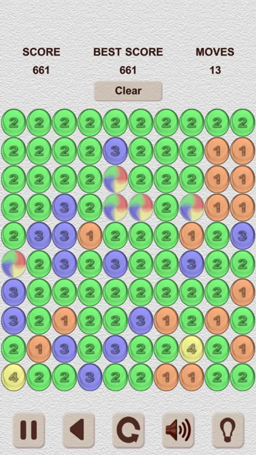Select a color group of bubbles with same numbers on a grid and click to combine them to grow up.