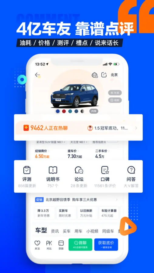【精彩发现】提供汽车电台、车型对比、购车计算器功能,让您轻松比较各项参数差异同时对购车费用做到心中有数;更有二手车买卖、车商城、电动车之家、保养优惠和违章查询,为您买车用车提供全方面贴心服务。