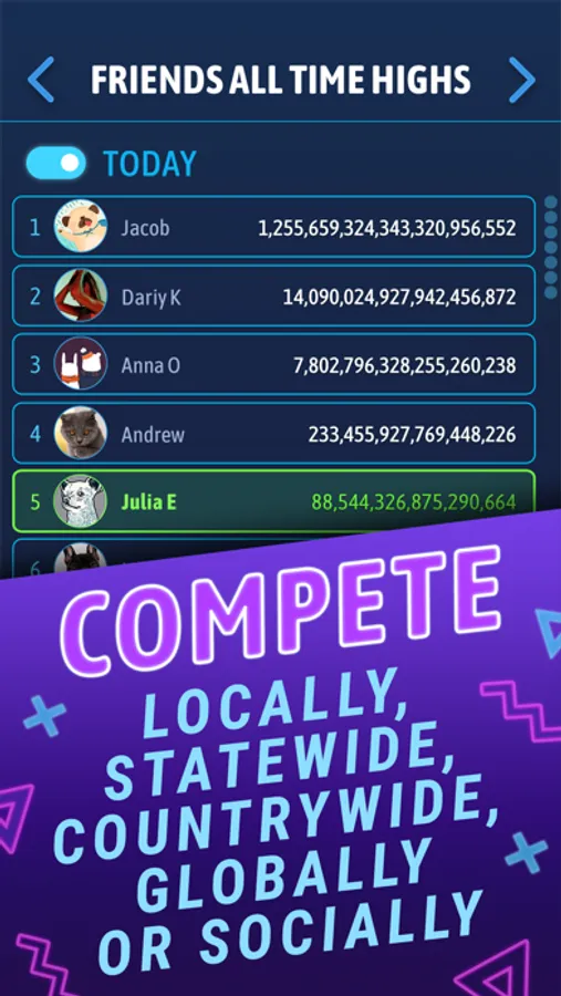 • Daily Dash Leaderboards - Local, state, national, international and friends leaderboards reset every 24 hours making each day a new challenge to reach the top.