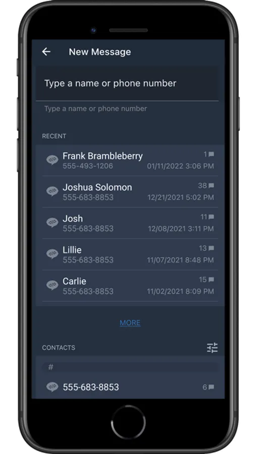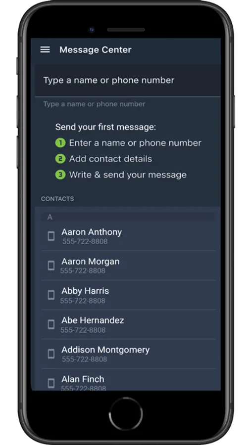 • Send text messages to contacts from previous conversations in Message Center, from your phone, or by adding their contact information, and see your new contact in Contact Center after the message is sent.