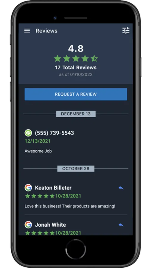 Be the first to respond whenever and however customers want to interact. Message center lets you interact with customers through Text Messaging, WebChat, Google Business Messages, & more.