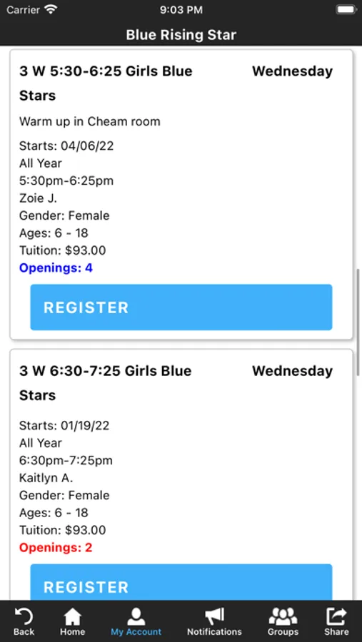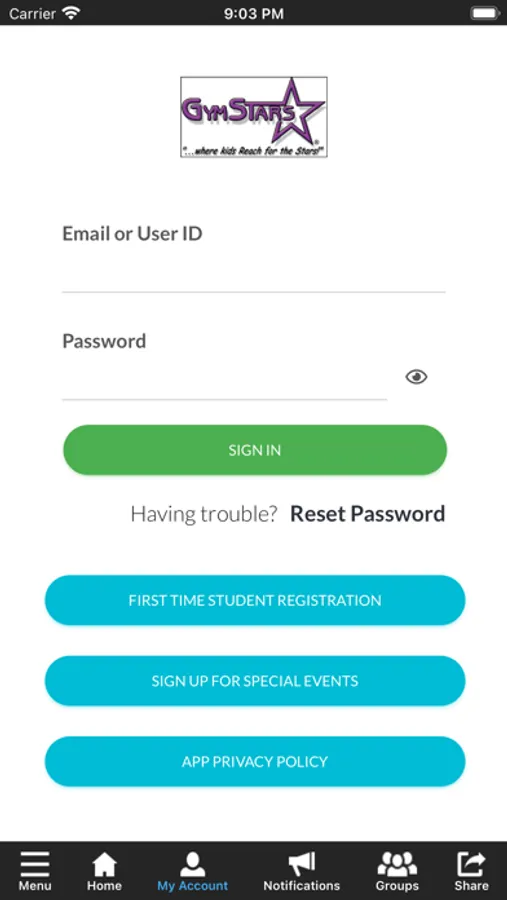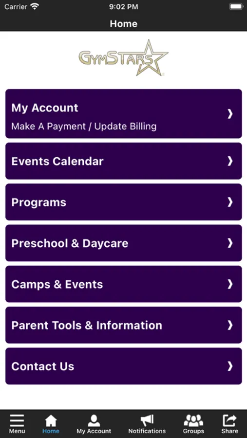The GymStars Gymnastics app allows you to manage your account with ease, register for classes, parties, and special events. You'll also receive important notifications about class changes, closings, registration openings, special announcements, and upcoming events.