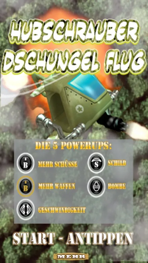 Es gibt 5 Powerups mit denen Dein Hubschrauber verbessert werden kann:
