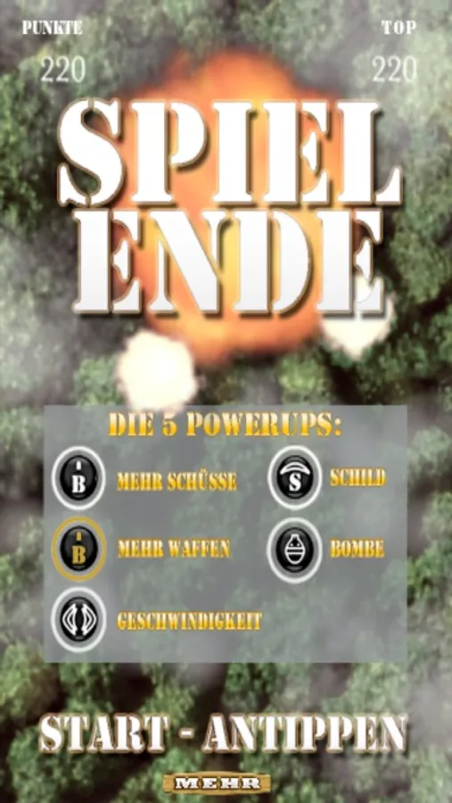 Mit jedem abgeschossenen Feind steigt Deine Chance auf weitere Powerups.