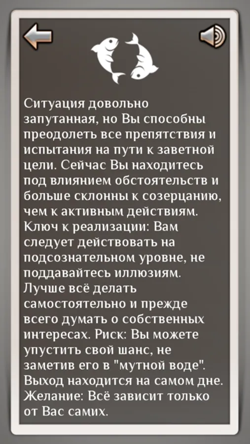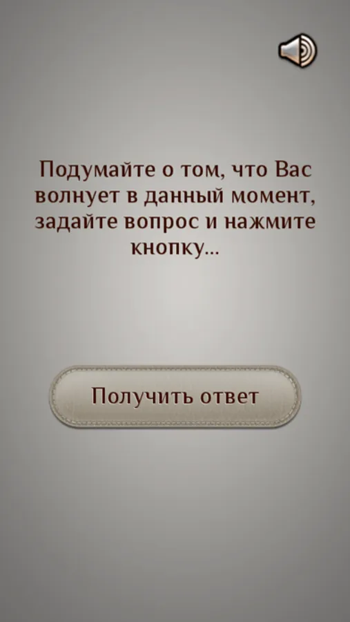 Подумайте о том, что Вас волнует в данный момент и задайте вопрос, после чего нажмите на кнопку, чтобы получить ответ.