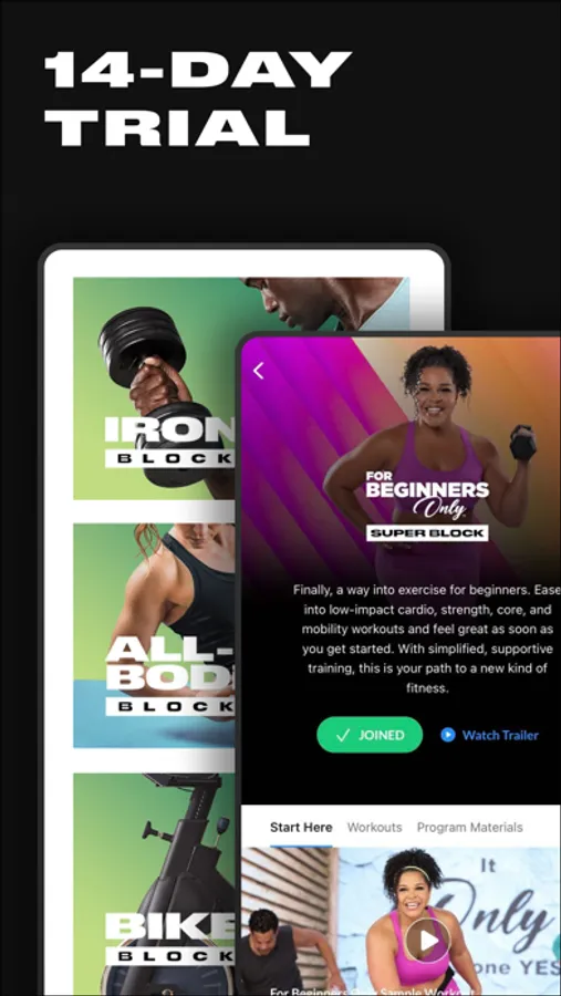 Our 95 results-proven fitness programs and thousands of energizing workouts with options ranging from HIIT and barre to yoga, strength training, cardio, meditation, dance, and mixed martial arts will ensure you reach your goals and never get bored.
