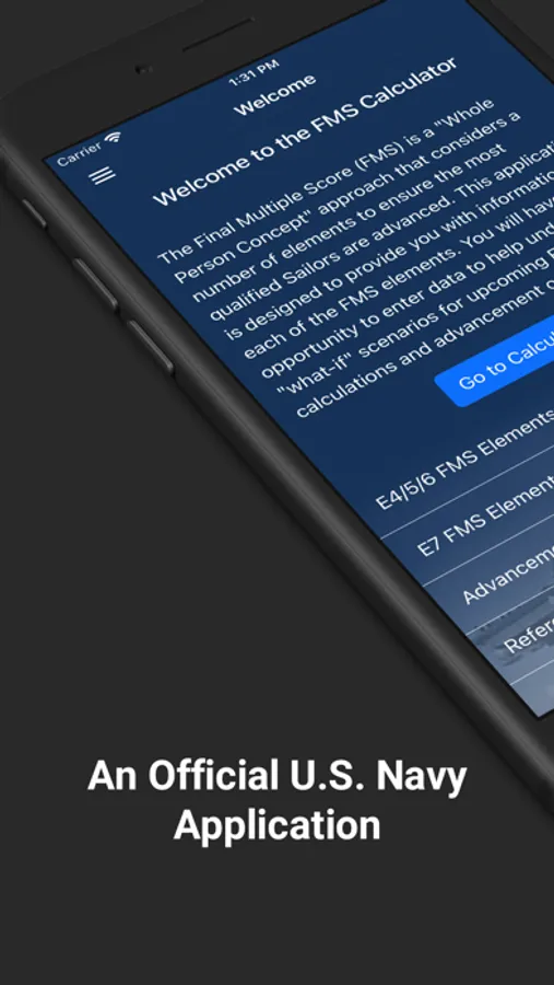 This mobile app calculates projected Final Multiple Scores (FMS) for E3 through E6 enlisted Sailors eligible for advancement to pay grades E4 through E7. A Sailor's FMS standing is one of two primary factors that determine a Sailor’s opportunity to advance to the next paygrade during an advancement cycle.