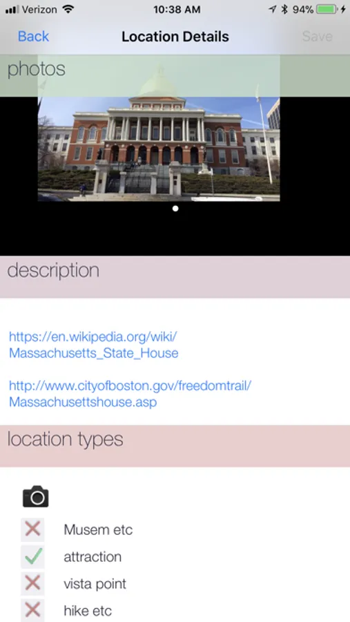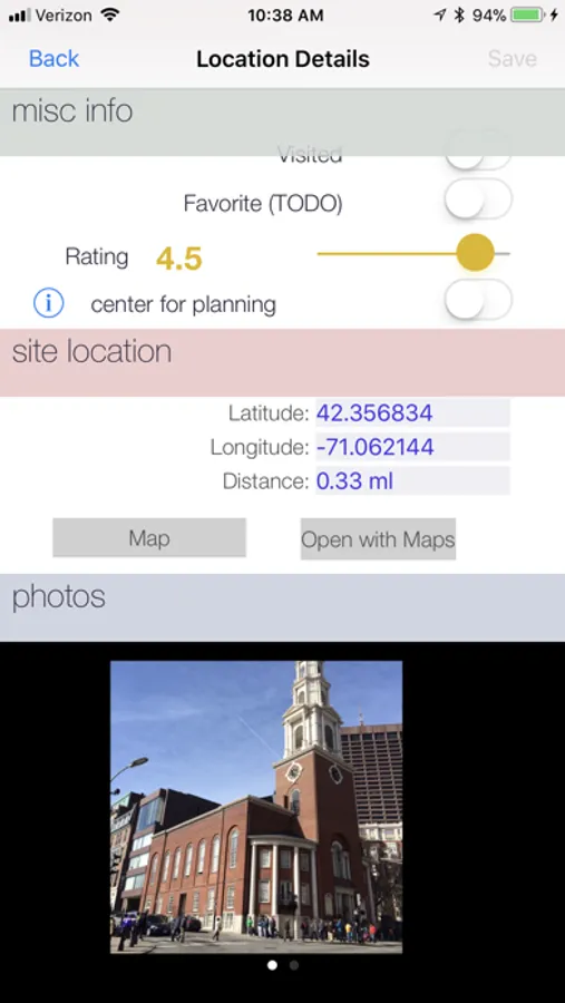 eGO Boston is travel app designed for travelers planning to visit Boston, Massachusetts. It contains dozens of famous places, some hiking trails or scenic photography vista points, with short description, sample photographs and useful links. App shows in real-time distances and directions to locations. It also allows to add user defined locations, hotels etc..