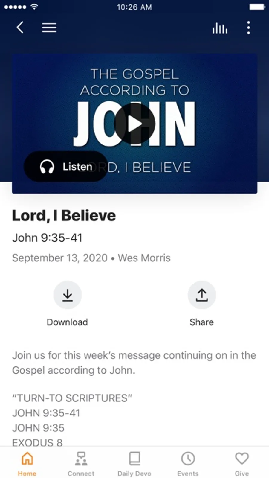 Download Feature: You are able to download audio sermon files to your device so you can listen to them when offline.