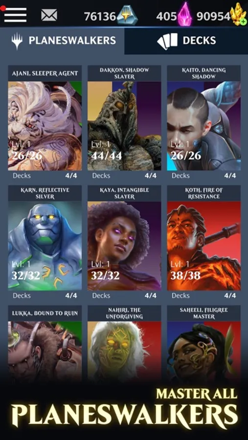 Find the latest Planeswalkers from Magic: The Gathering, recruit and pair them with your best deck and enter the arena fully prepared to decimate the competition: Make a pact with Liliana to summon an endless, undying horde of minions! Team up with the hotheaded Chandra and burn down the battlefield by casting fire, fire, and more fire! Or scheme darkness plans using spells to manipulate artifacts bringing them to life with the talented artificer Tezzeret. Each Planeswalker comes with unique abilities to activate and enhance your cards or wreak havoc on your opponents. Build up their levels and watch their abilities grow into an unstoppable force!