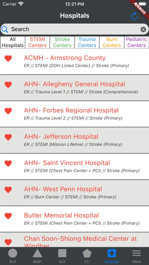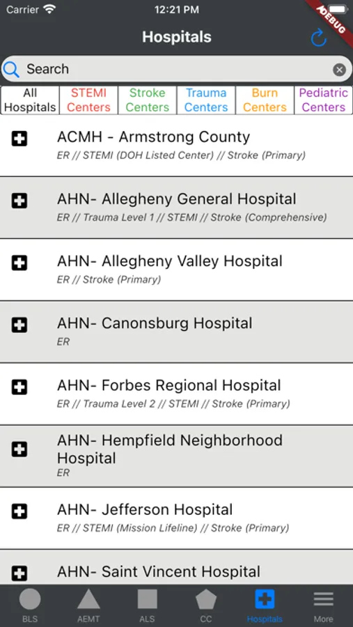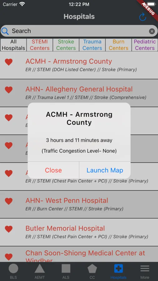 While every effort was made to ensure that the data contained is accurate and up-to-date, providers should be mindful to verify they are always operating in accordance with protocols published by the Commonwealth, regional guidance, and the providers respective scope of practice and certification levels. This app also features categorizing and filtering resources by whether or not they were a designated STEMI, stroke, trauma, burn, or pediatric center. Any corrections should be sent in to support immediately.