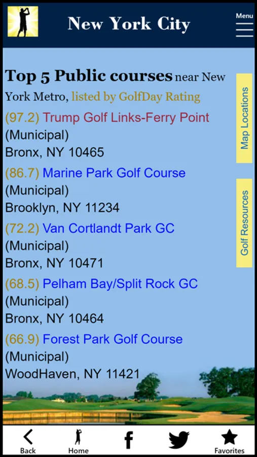 Don’t waste your time on a dog track. GolfDay New York City includes over 10 public municipal courses, and rates each one to make it easy to find the best course near you or where you plan to be. Once you decide, direct on-line booking provides the best price with no fees.