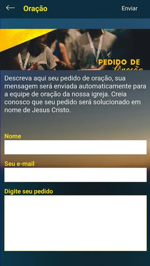 com ele você ficará por dentro de tudo que acontece, e também pode realizar pedidos de oração, eventos, notícias, ministração em vídeo, áudio, culto ao vivo todos os domingos e muito mais.