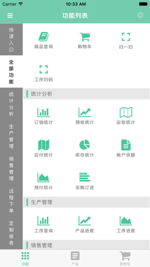 引入手机查货、扫一扫、购物车、统计分析等功能,一方面可以方便销售人员查货、开单,另外企业高层可随时掌握企业的经营状况。
