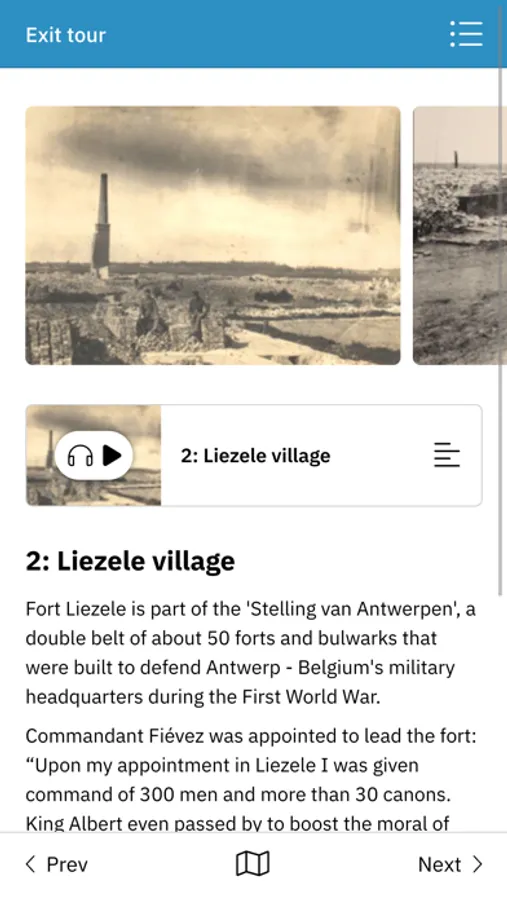This app lets you discover the Great War in the Scheldeland. You will find cycling and walking routes through the loveliest places of this water-rich region. And in the meantime, you can travel back through time. Thanks to 3D-audio, augmented reality, photographs and videos, you can see what happened here a century ago. You can listen to personal stories from the residents of yesteryear at the places where they experienced them.