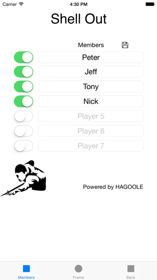 Simple score keeping Shell Out application that is played at snooker clubs around the world.