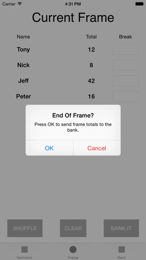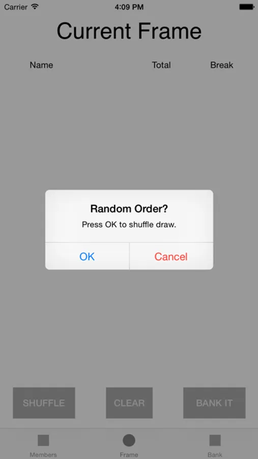 The order of play is drawn at the beginning of each frame either random or based on rotation with totals stored in the bank section of the app.
