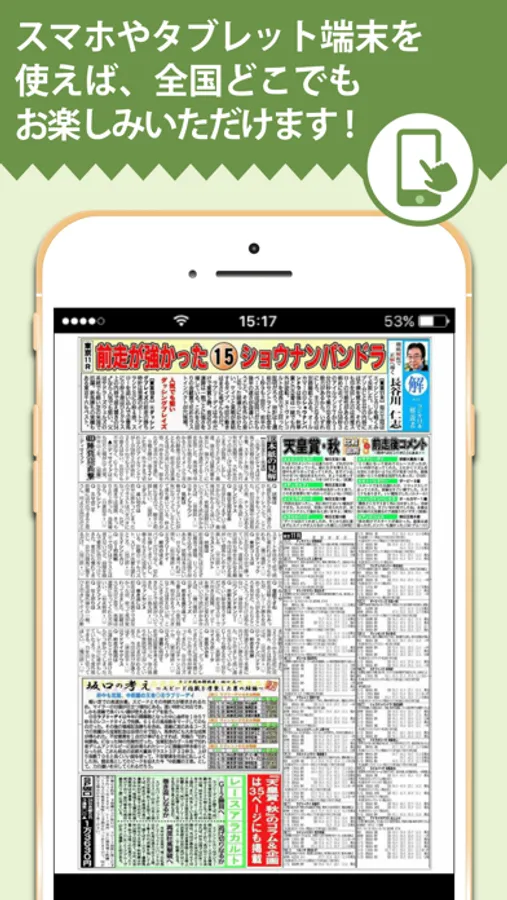 ・開催前日の午後1時頃に翌日の紙面をアップします。自宅でダウンロードして、オフラインでも読むことができます。