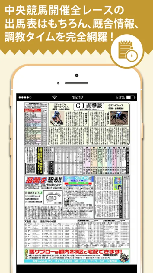 中央競馬開催全レースの出馬表はもちろん、厩舎情報、調教タイムを完全網羅!
