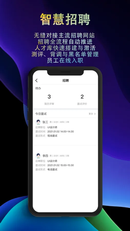 i人事,一体化HRSaaS管理系统、薪酬绩效专家。核心功能包括组织人事、招聘、考勤排班、薪酬、绩效、报表、OA审批、培训等,数据互联,更有“报表分析”,为决策提供支持。