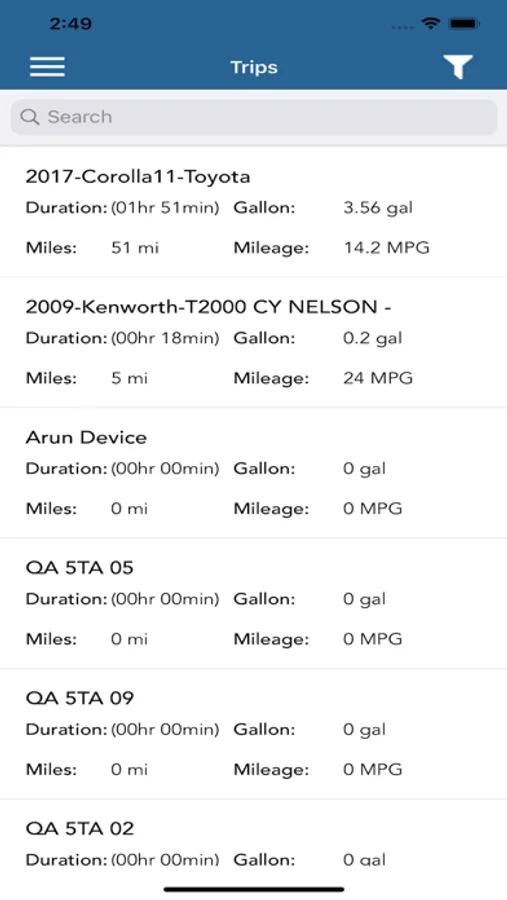 Display Trip and Alert data for vehicles with enhanced date filter selection.