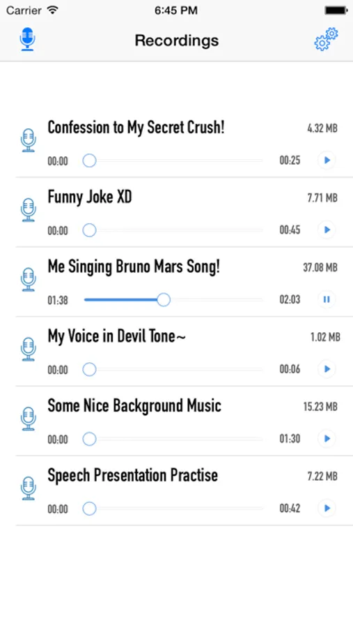 Simple Voice Recorder is a very easy to use and intuitive sound recording tool! You can use this voice recorder for various purposes including singing, practise your speech, capture nice music, make some audios, and lots of other usage! Download this app for free today and try it now!
