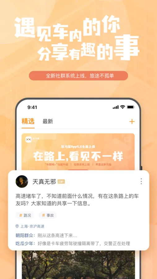 在这里您还能获得为您量身定制的各项优质资源与服务,出行、保养、游玩......为您省钱的同时,随时随地get用车相关信息。记录分享真实多彩的用车生活,内容包含自驾美景、车内K歌、电竞赛车、惊险一刻、小课堂、驾驶趣闻等。百万车友全国连线互动。圈子再小,也能找到志同道合的朋友,一起发现生活的美好。